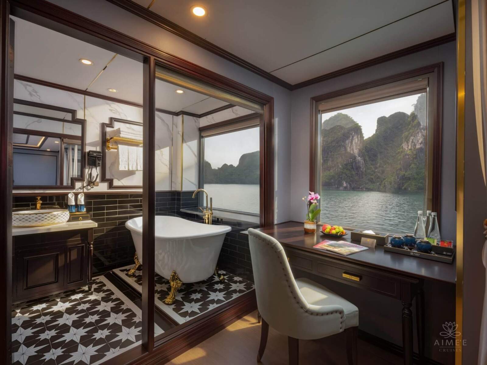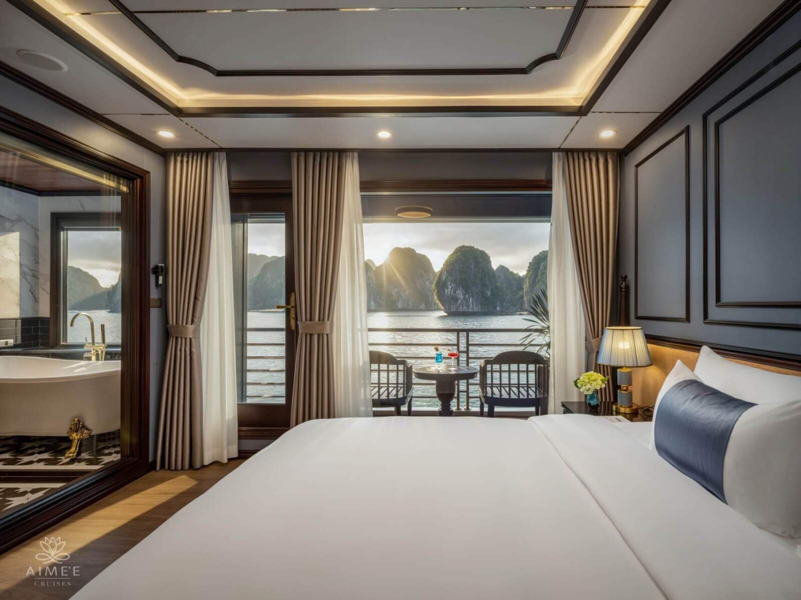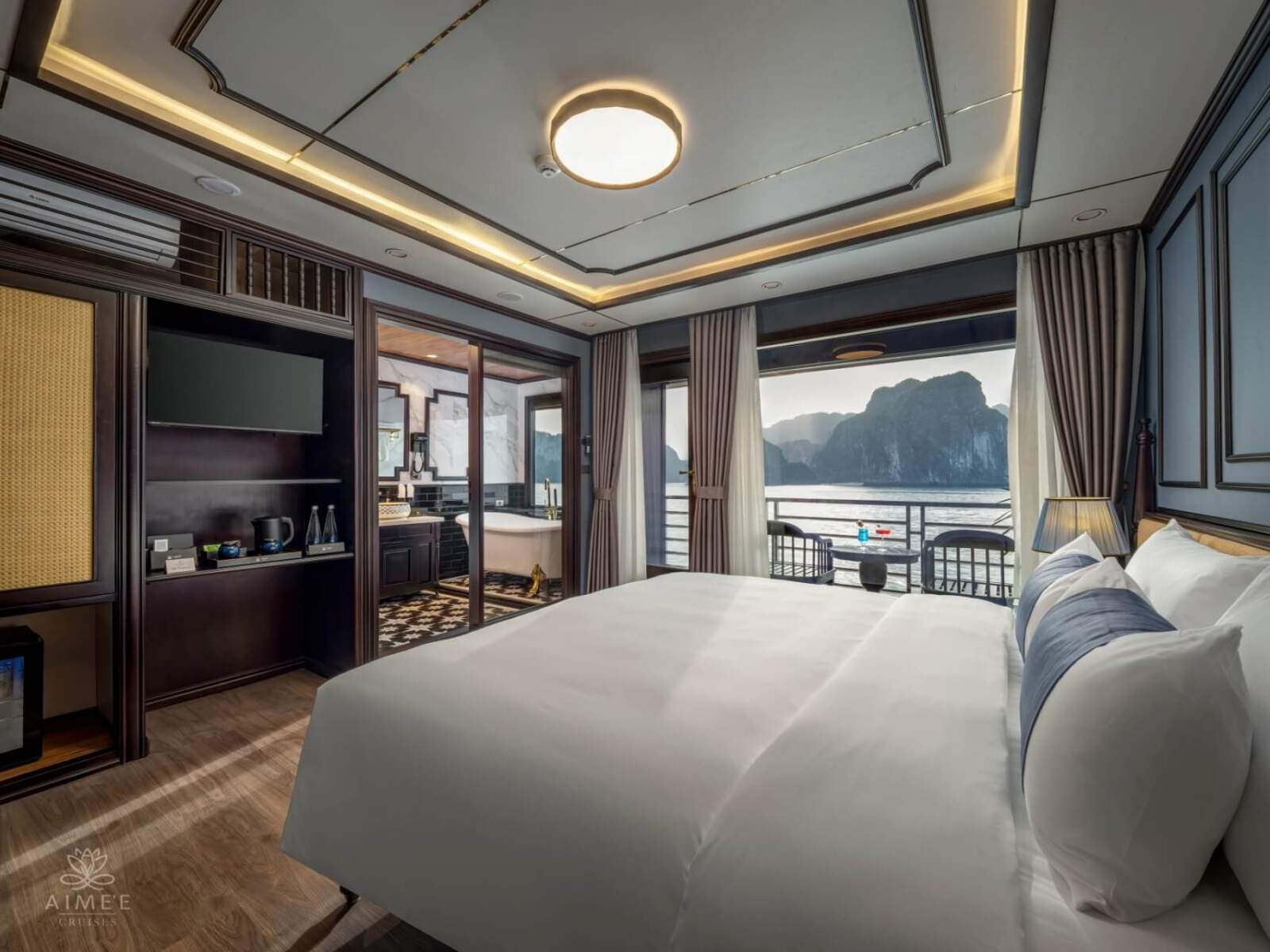 Located on the second deck, the Eden Balcony Suite features 12 elegant cabins, each ranging from 30–32m². Every suite is thoughtfully designed with a private balcony overlooking Halong Bay and an ocean-view bathtub, allowing guests to enjoy complete relaxation with breathtaking scenery.