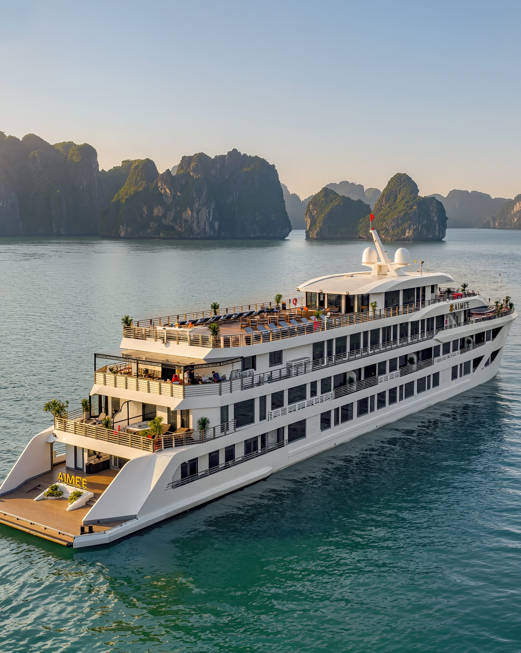Mỗi chuyến đi là một hành trình tận hưởng trọn vẹn – nơi bạn được chăm sóc chu đáo, tận hưởng không gian yên bình và tìm lại sự cân bằng giữa thiên nhiên kì vĩ của Vịnh Hạ Long. Giao hoà giữa thiết kế hiện đại và các giá trị văn hóa Việt Nam, Aime’e Cruises là sự tiếp nối của một di sản – câu chuyện về con người và Vịnh Hạ Long.